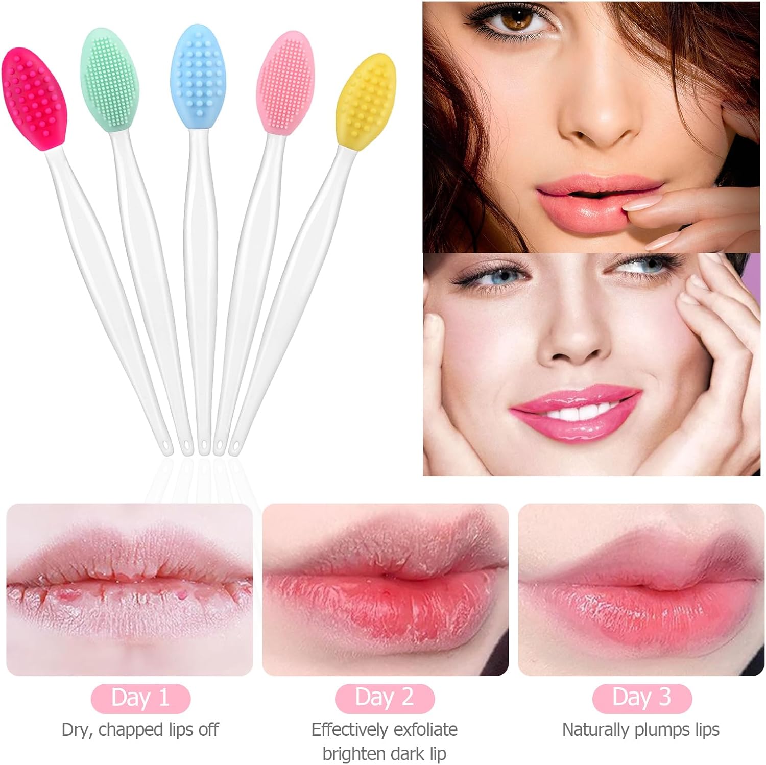 • 2-in-1 Design: Features a dual-action brush with smaller silicone particles for lip scrubbing and larger particles for a soothing massage.