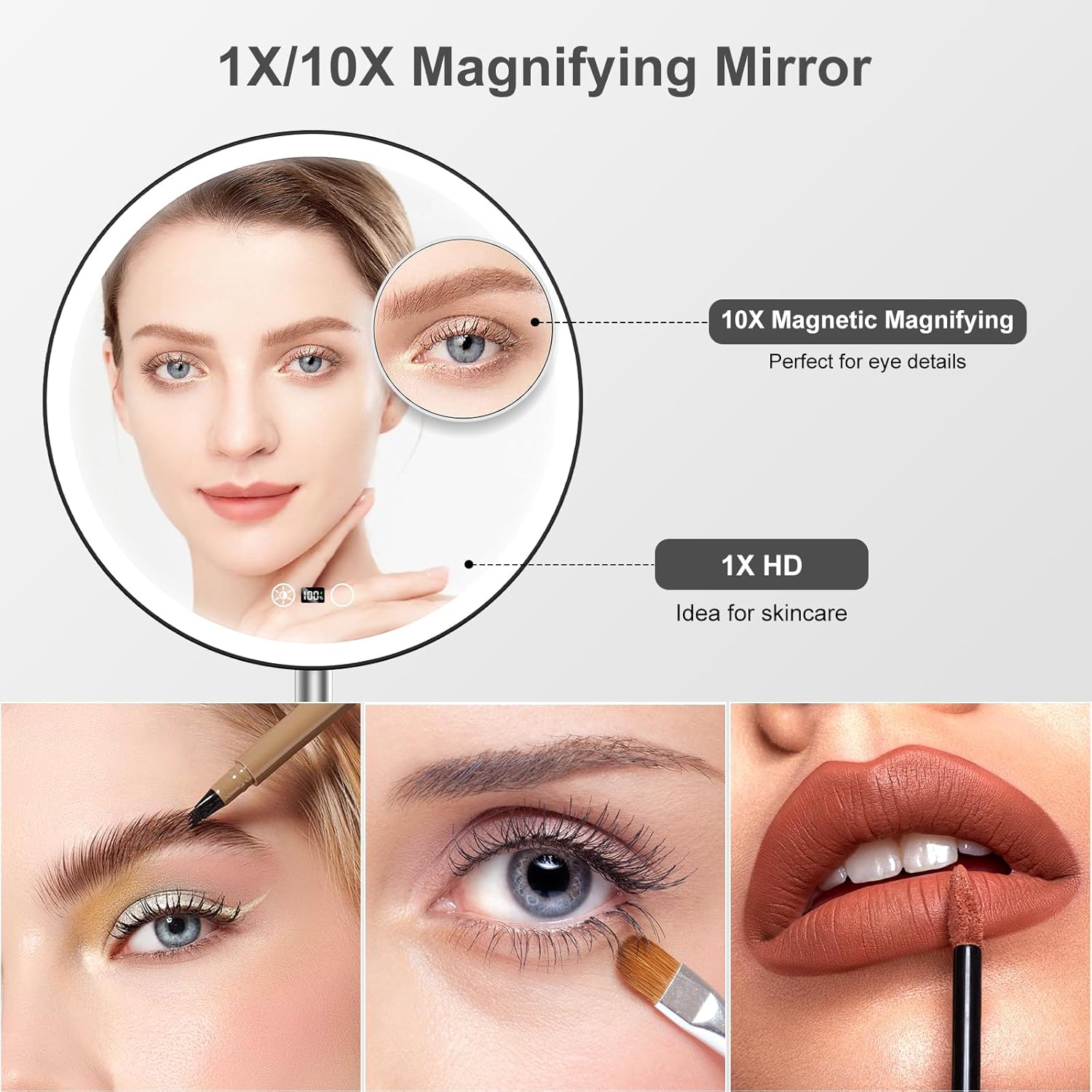 – **10X Magnification & 10.5″ Large View**: Offers a full-face view and enhanced detail visibility for precision tasks like plucking and eyeliner application.